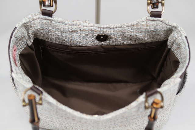 表:tweed/マチ:ラミネート 内布:ナイロン持ち手: Bamboo