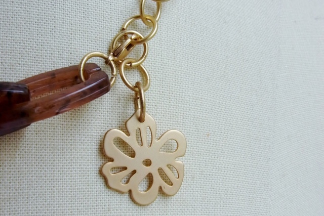 フランスから輸入の個性的で大人キュートなネックレス花モチーフとアクリルチェーンの組み合わせが新鮮です。マットゴールドにブラウンの組み合わせが可愛くなりすぎずエレガントです。■サイズ:長さ:約42cm+アジャスター4cm大きなほうの花の直径:が約4.5cm