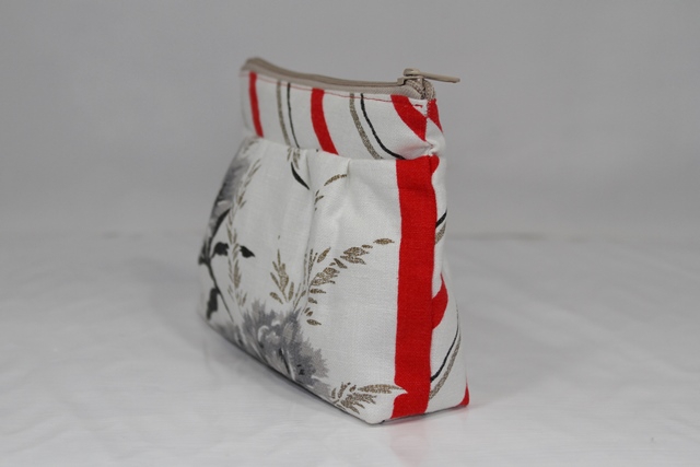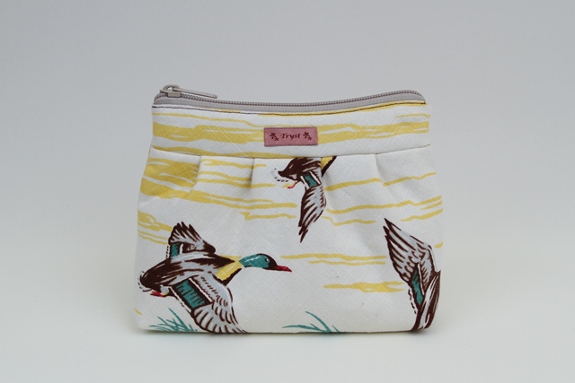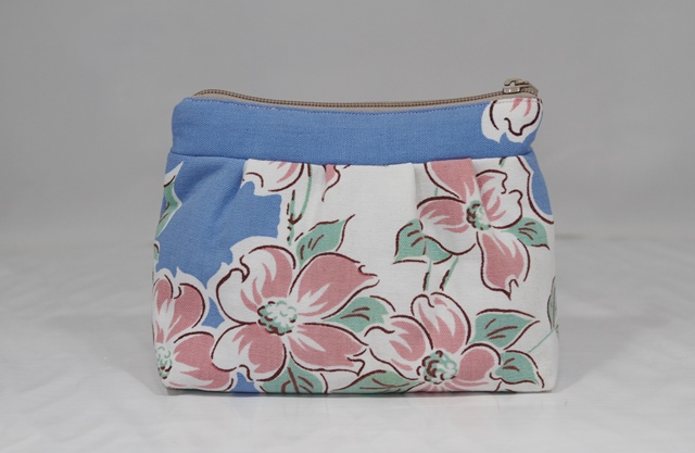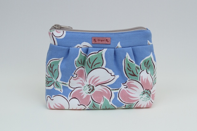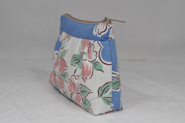 ヨーロッパのヴィンテージ コットン で製作したファスナーポーチ。