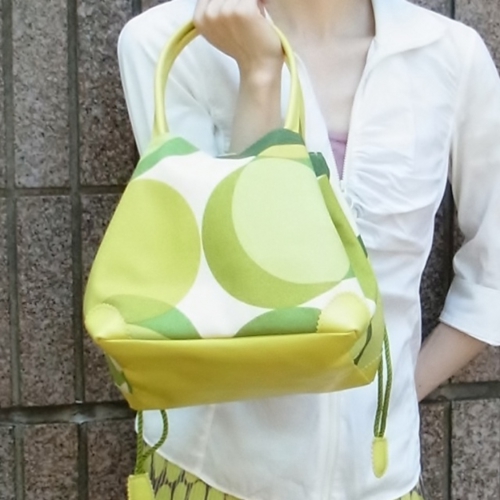 紐を結ぶとコロンと可愛いポンパドール・バッグに。
