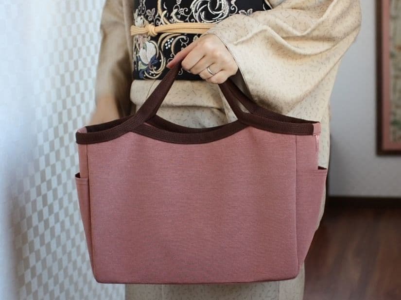 お着物生地をリメイク。和装用に持ち手を短くしました